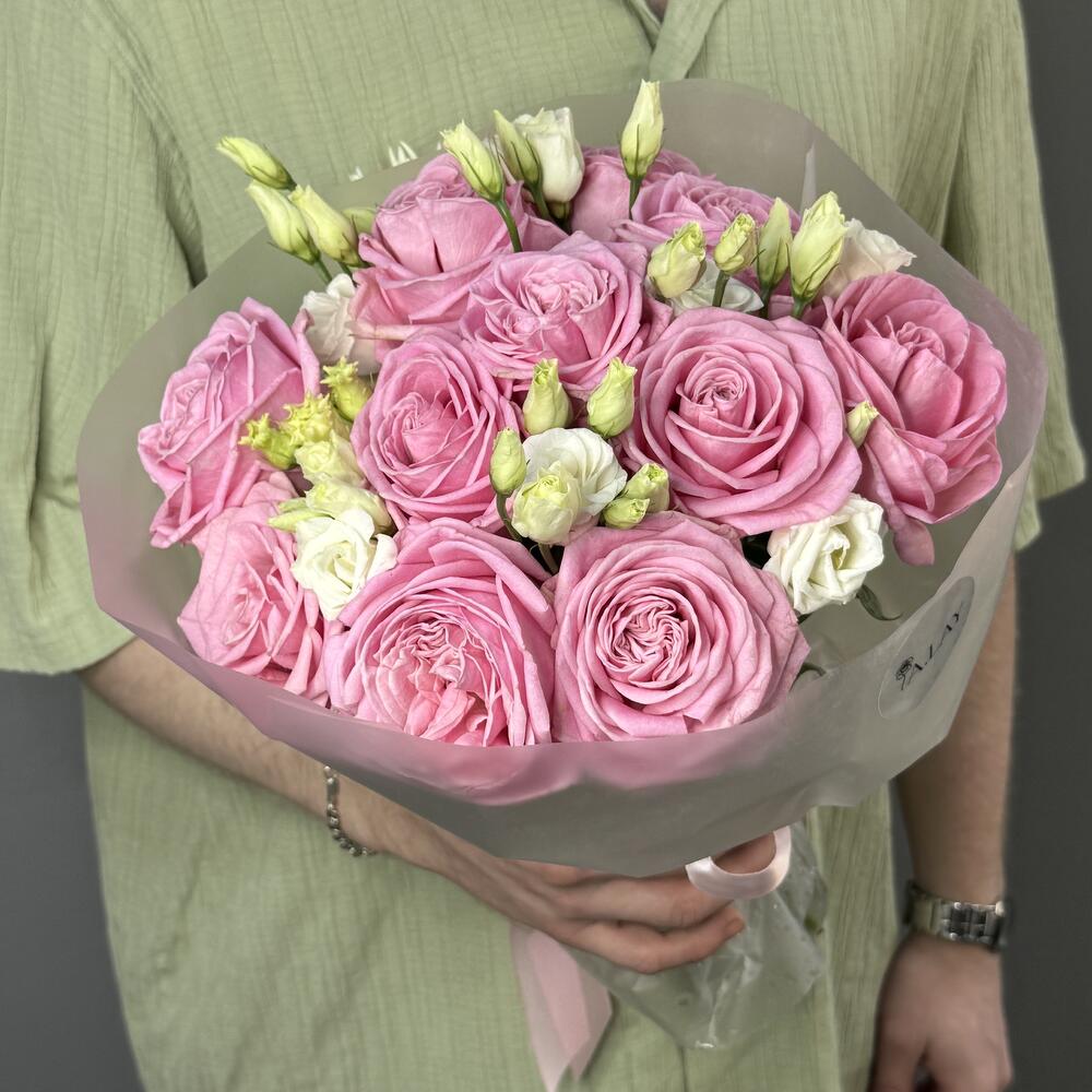 Яркий розовый букет с эустомой в Суоярви